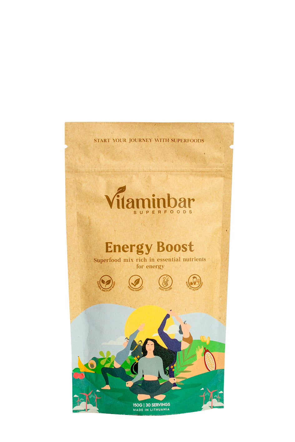Trijų supermaisto mišinių rinkinys, sukurtas natūropatinės mitybos specialistės iš kokybiškų, natūralių augalinės kilmės ingredientų, skirtų palaikyti gerą savijautą ir prisidėti prie sklandesnio virškinimo, produktyvumo, energijos bei geresnės odos būklės. Energy...